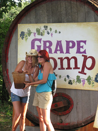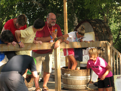Another big draw at the Wine Experience was the “Grape Stomp” where participants competed to see how much juice they could crust with their feet in five minutes (see pictures.) “We do about 16 “stomps” a day and all told, we crust about eight tons of grapes during the course of the Fair,” said White of ISU. During the Fair, the juice from the Grape Stomp fermented in a plastic container on the Wine Experience grounds, although White said that it’s doubtful that anyone would ever drink the finished wine.